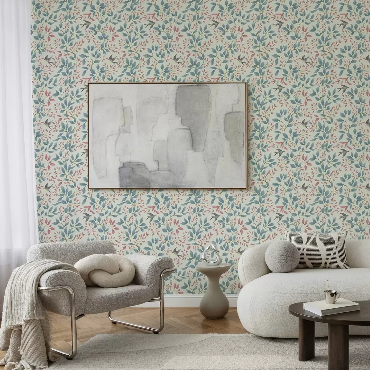 Wallpapers Airy branches and birds on a light mint background Nr. a00933v1