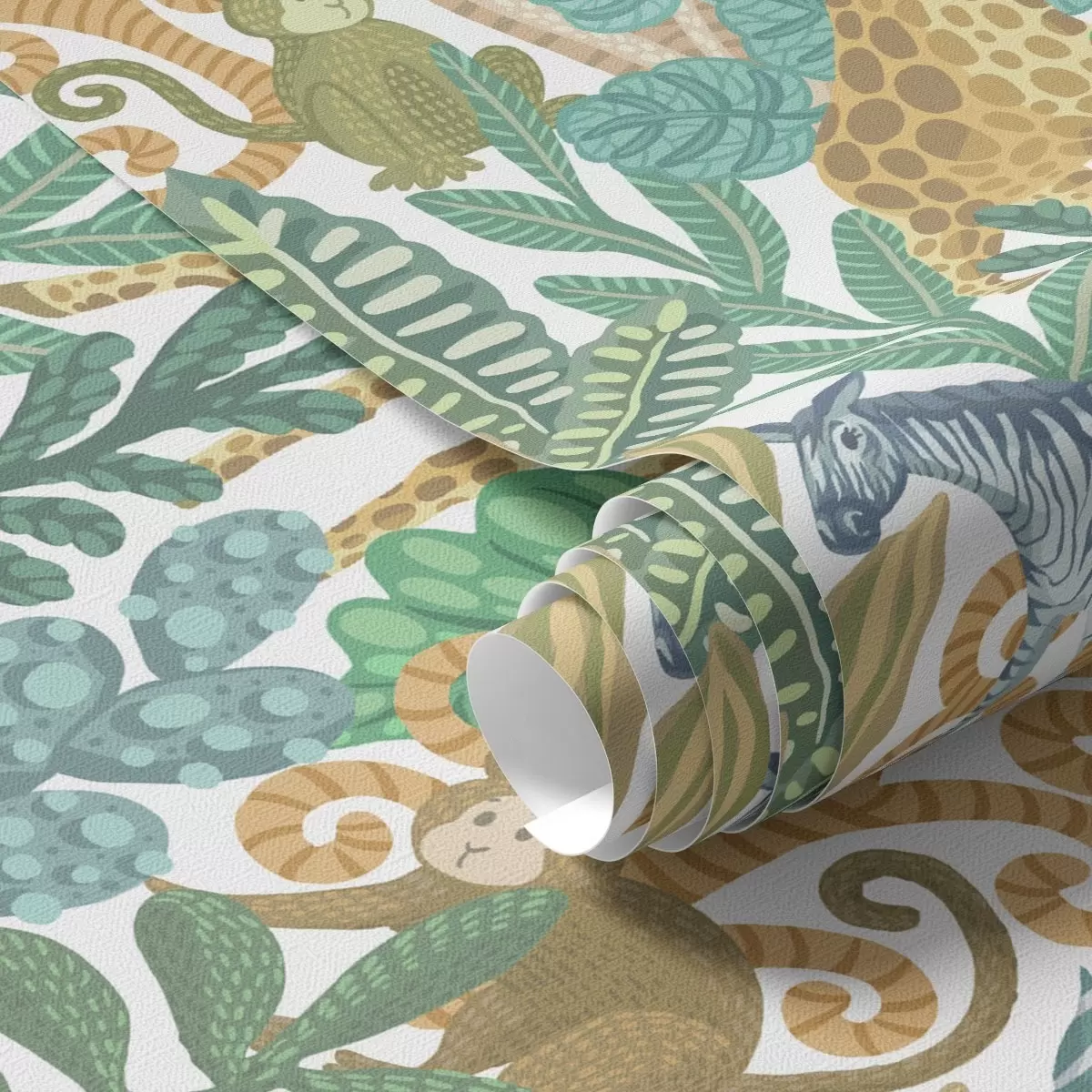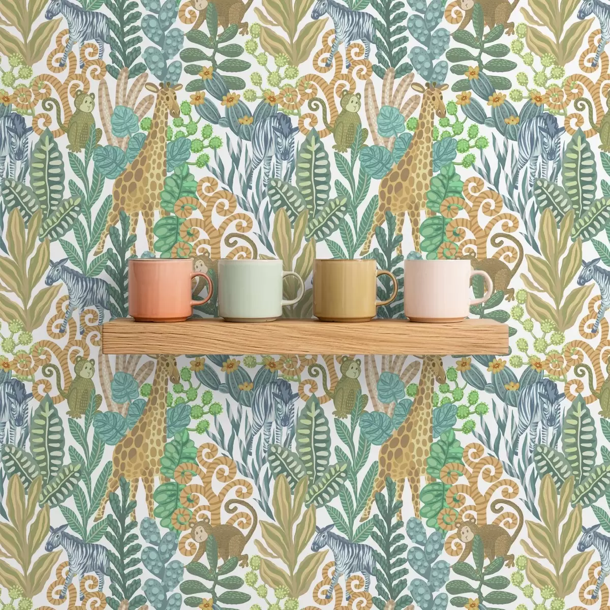 Wallpapers Cheerful savanna animals among leaves on a white background Nr. a01000