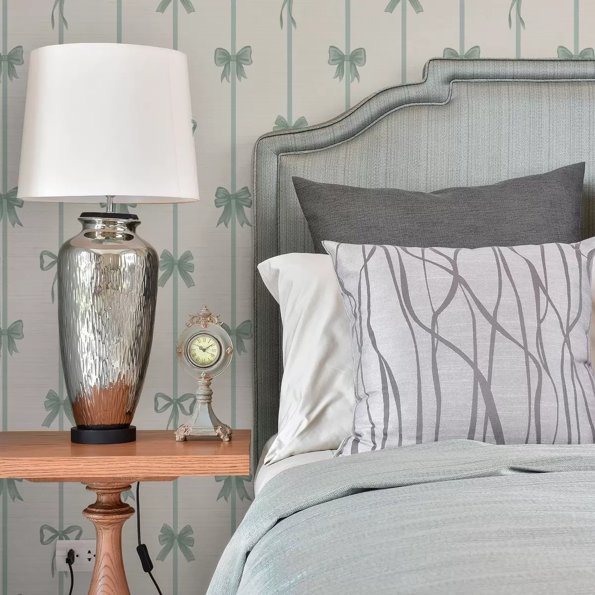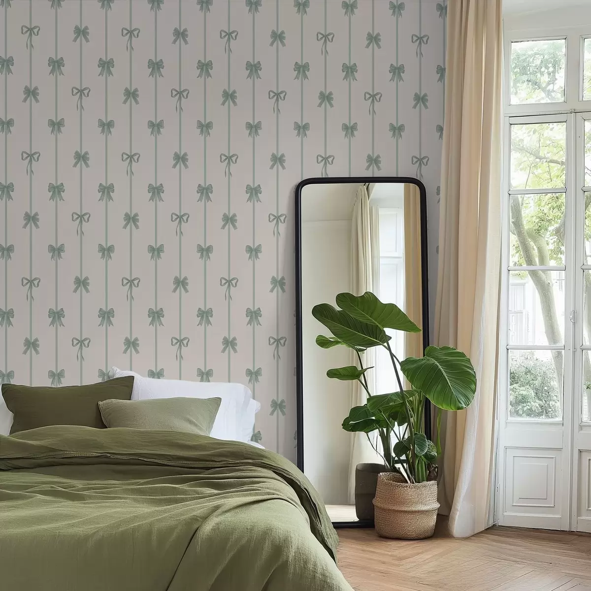 Wallpapers Green bows with ribbons on beige background Nr. a01074v1