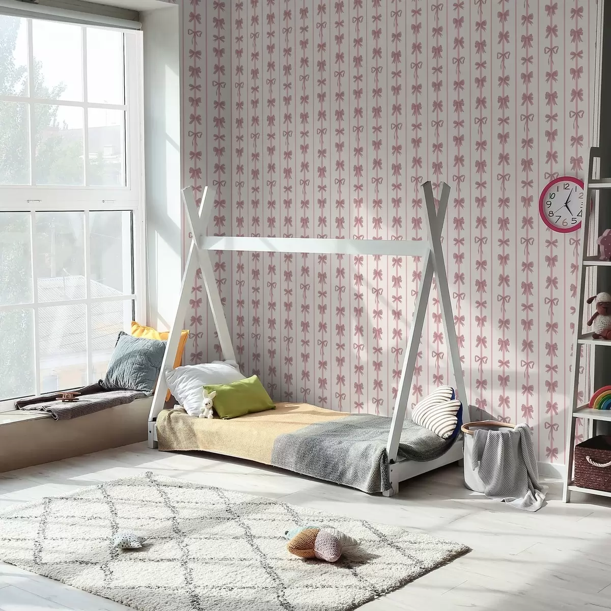 Wallpapers Pink bows in vertical stripes on light background Nr. a01075